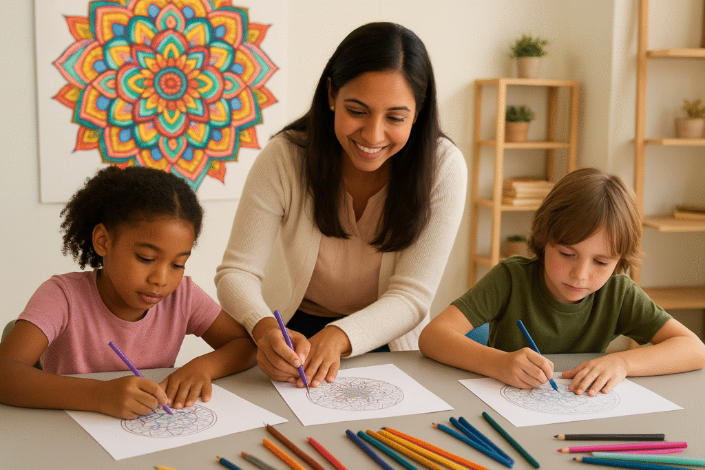 Discover the power of art and mindfulness combined. These guided sessions help children and adults connect with their emotions, calm their minds, and express themselves creatively through mandalas.